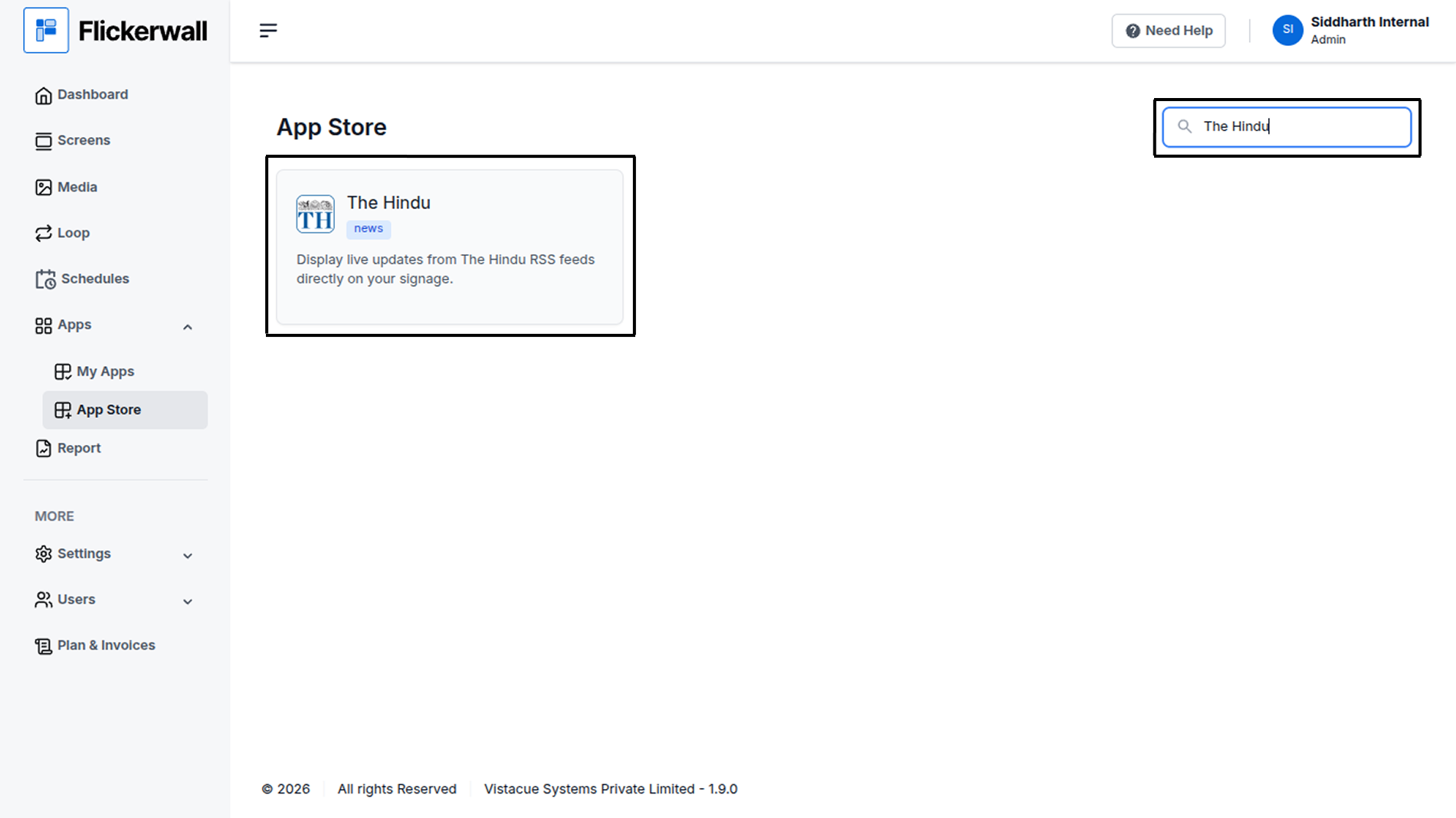 Step by step guide to learn how to add the The Hindu app from the Flickerwall storeStep 1 Go to Apps and then App store! click on the apps and then Nevigate to App store in the appeared drawer