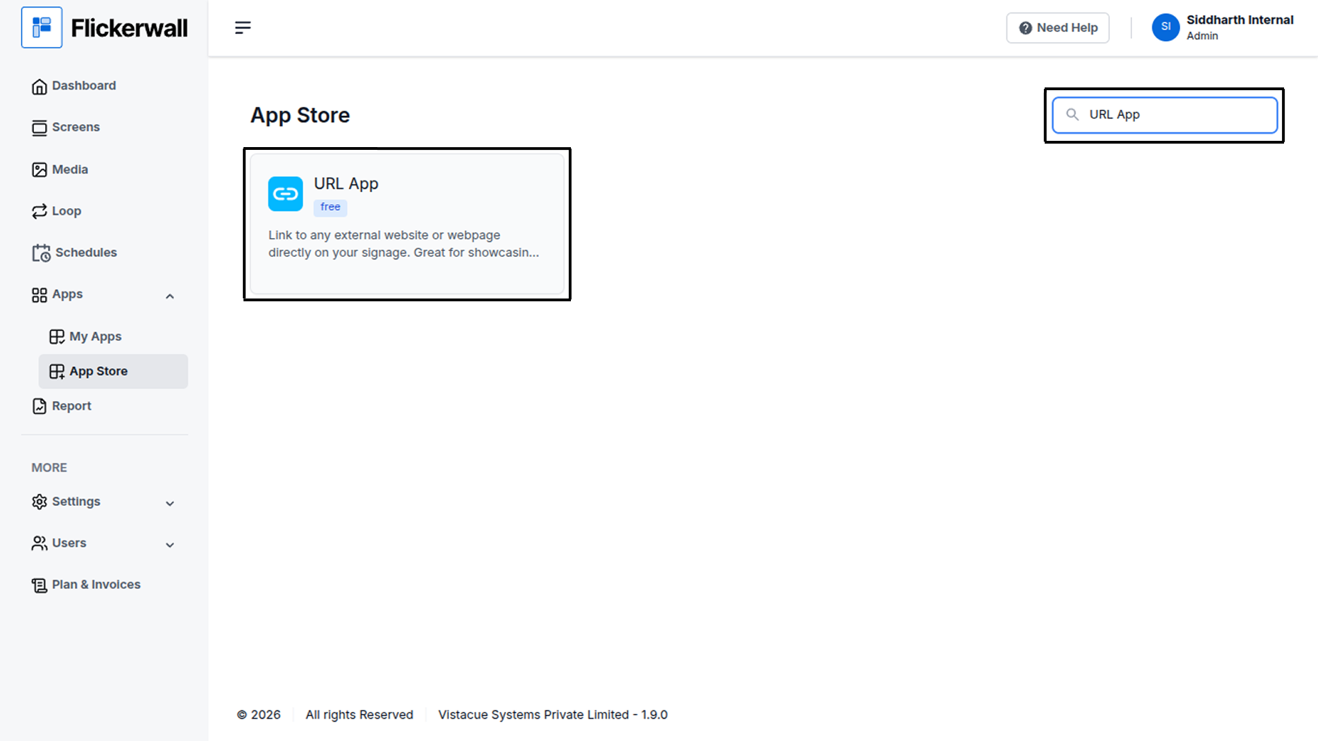 Step by step guide to learn how to add the URL app from the Flickerwall storeStep 1 Go to Apps and then App store! click on the apps and then Nevigate to App store in the appeared drawer