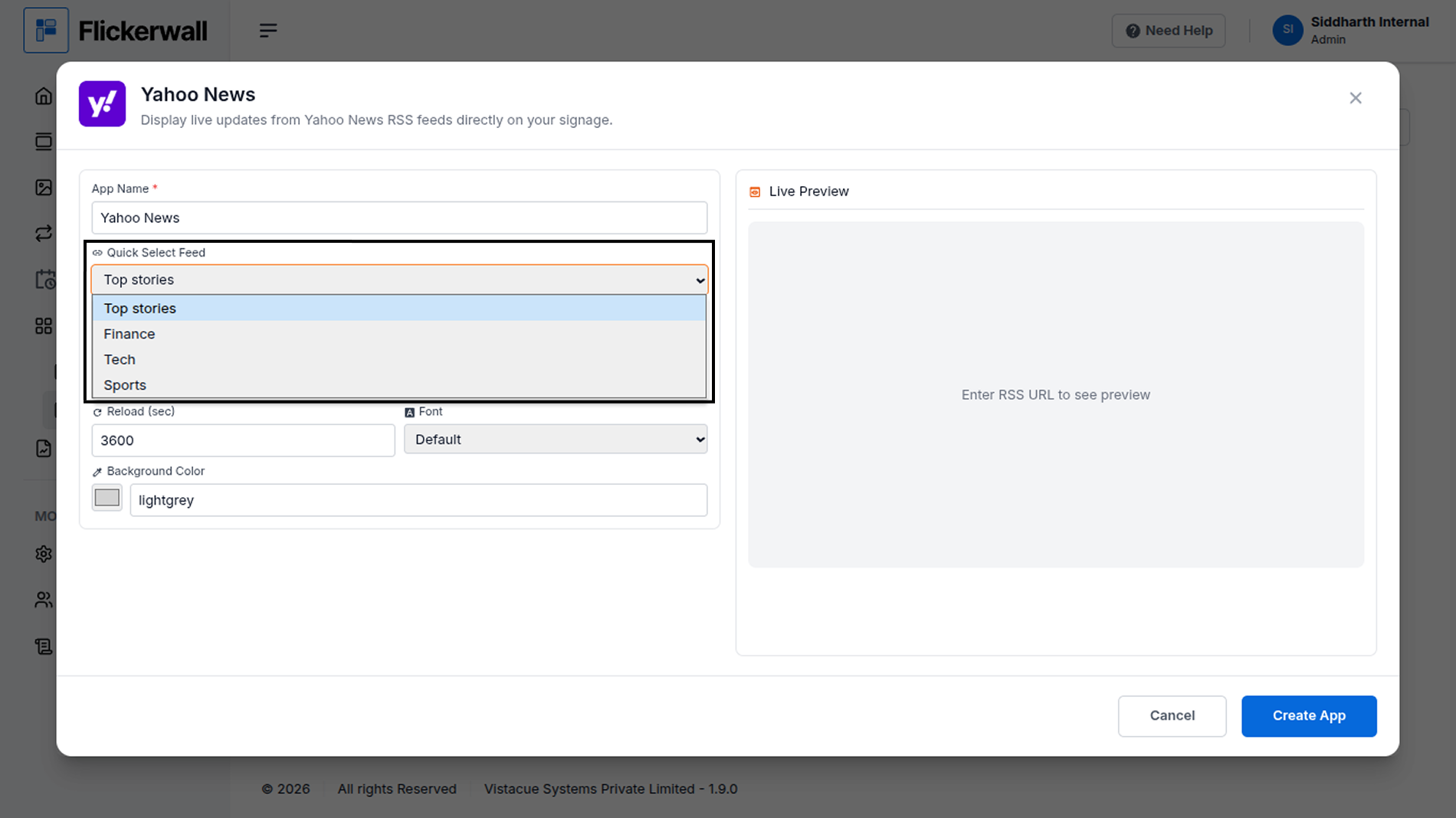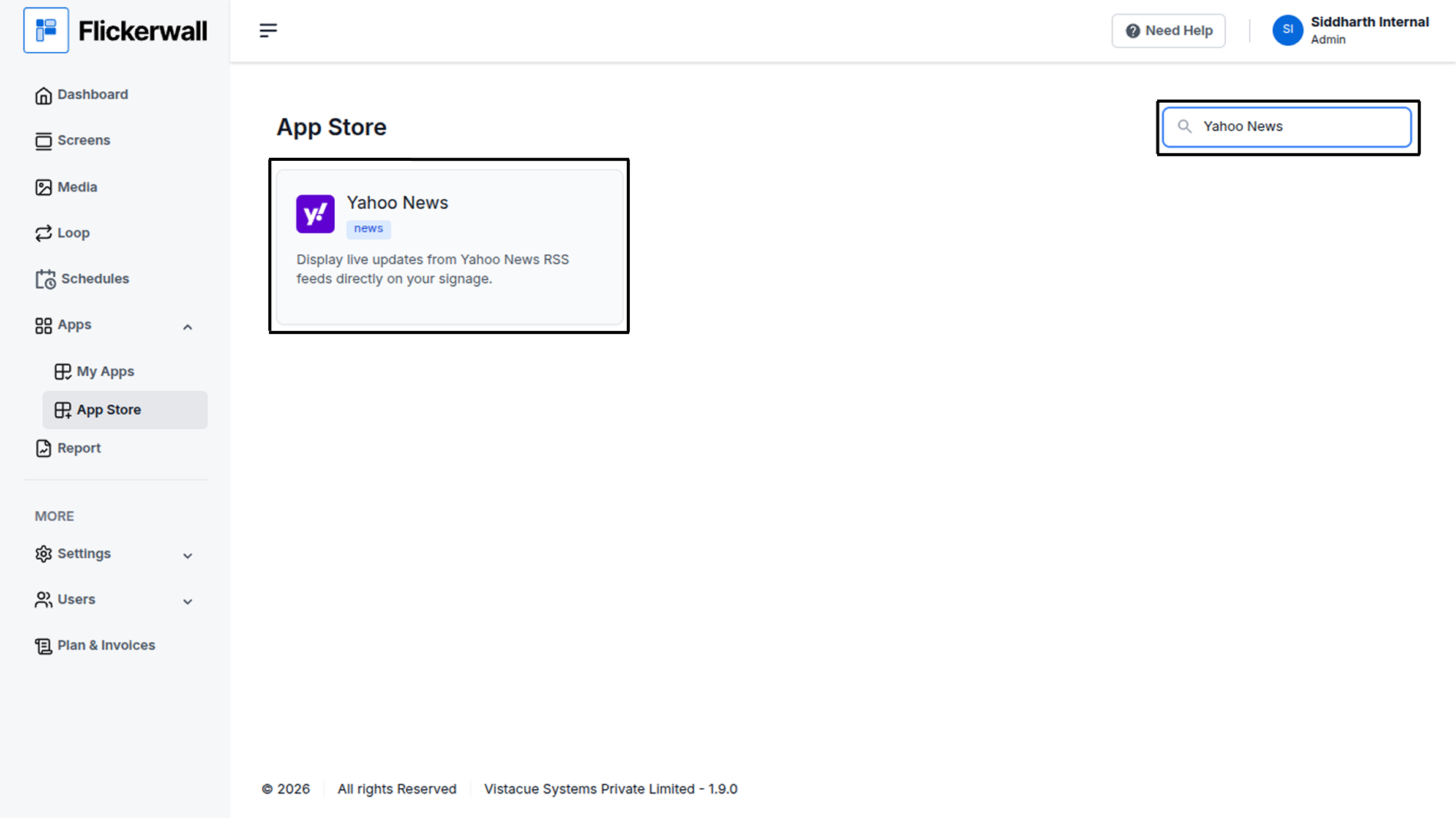 Step by step guide to learn how to add the Yahoo News app from the Flickerwall storeStep 1 Go to Apps and then App store! click on the apps and then Nevigate to App store in the appeared drawer