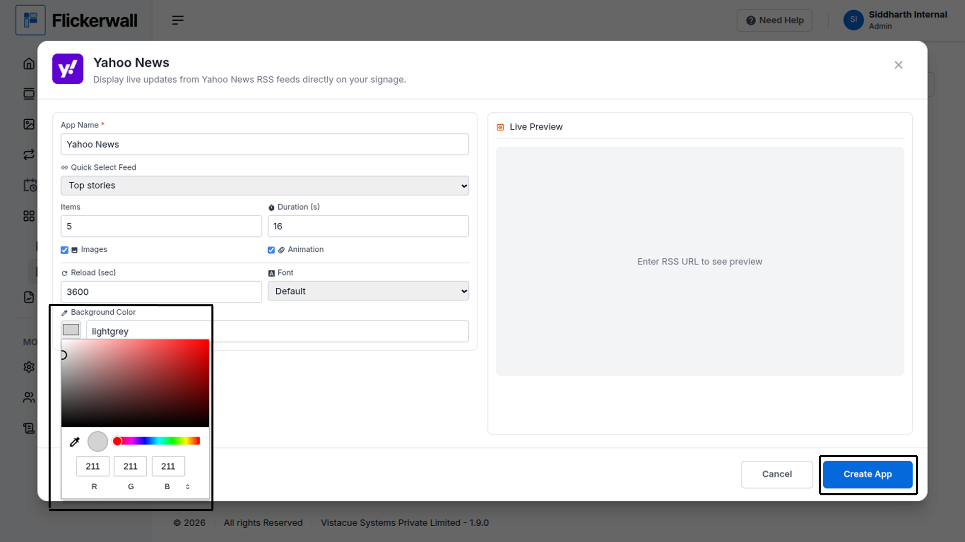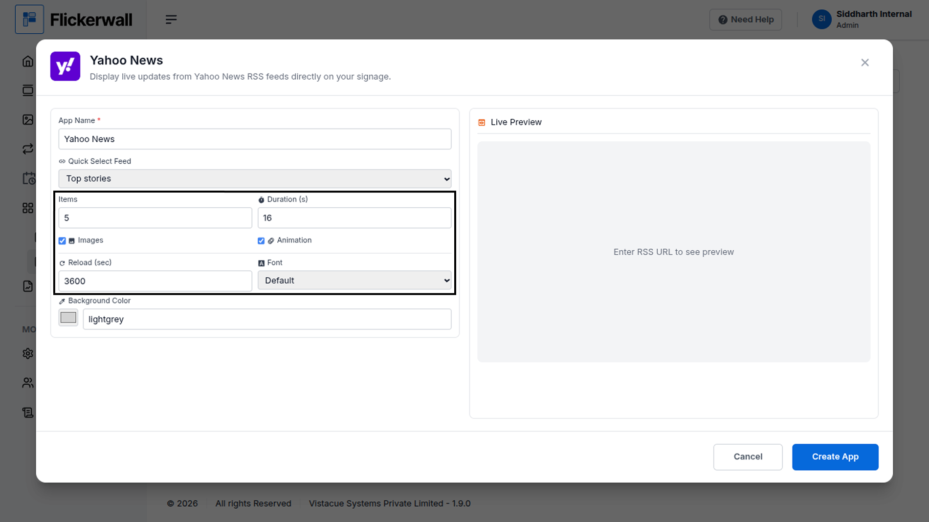 How to add and use the Yahoo News app from Flickerwall store?