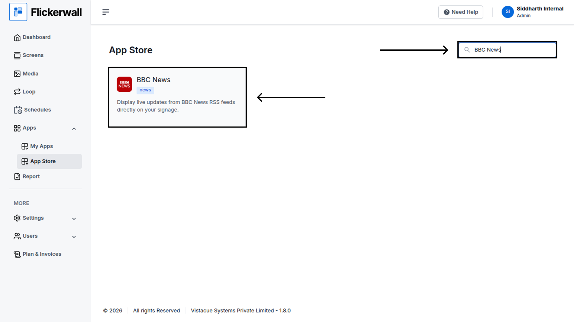 Learn how to add the BBC News from the Flickerwall app storeStep 1 Go to Apps and then App store! click on the apps and then Nevigate to App store in the appeared drawer