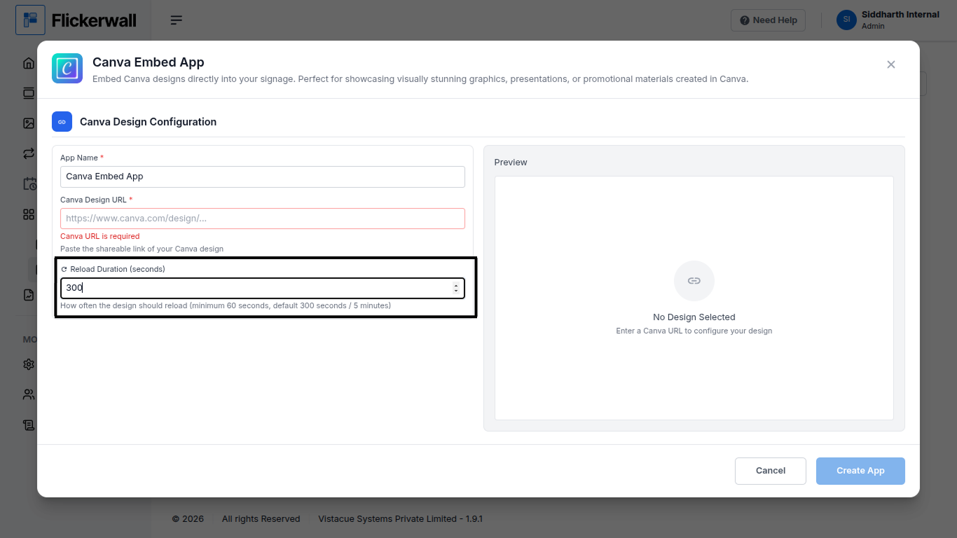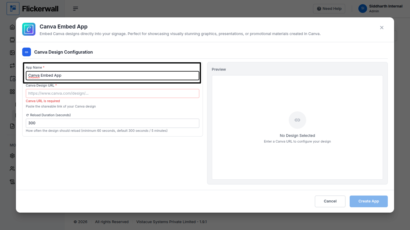How to add the Canva Embed App from Flickerwall store?