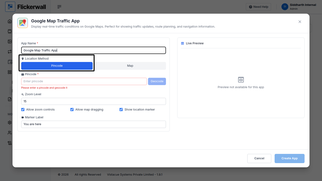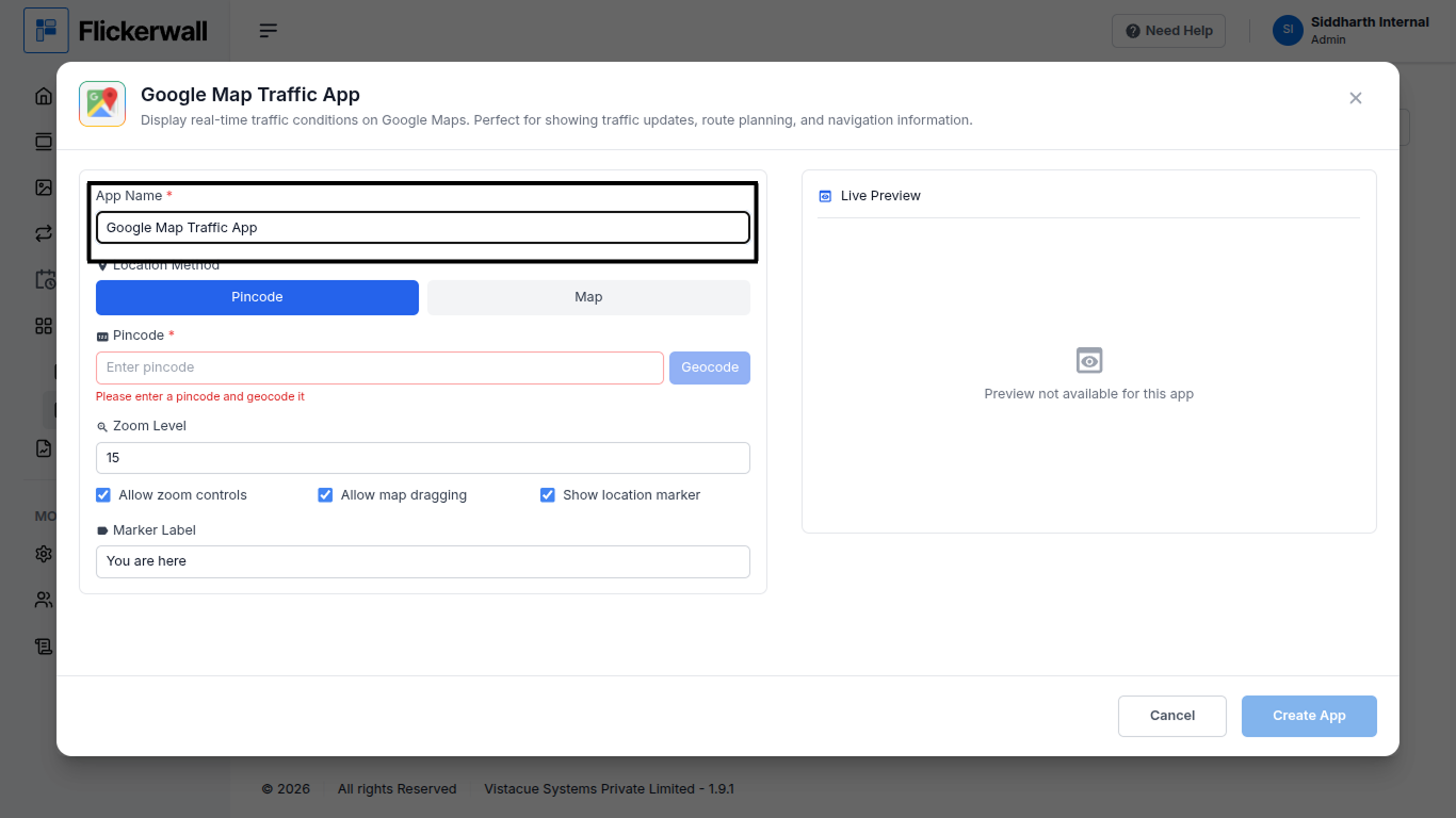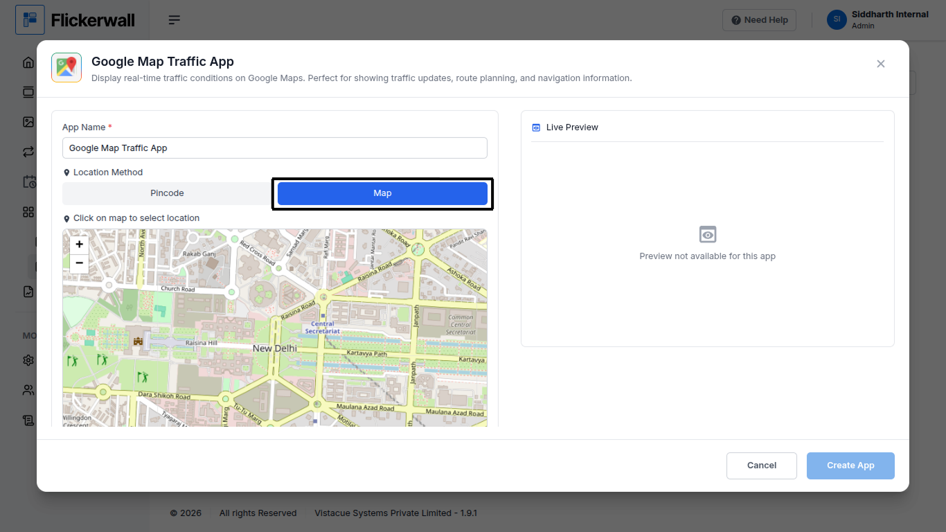 How to add the Google Map Traffic app from the Flickerwall store?