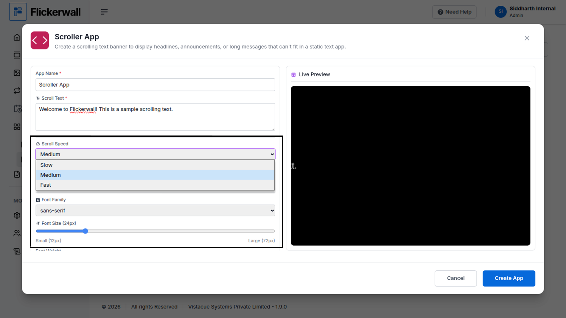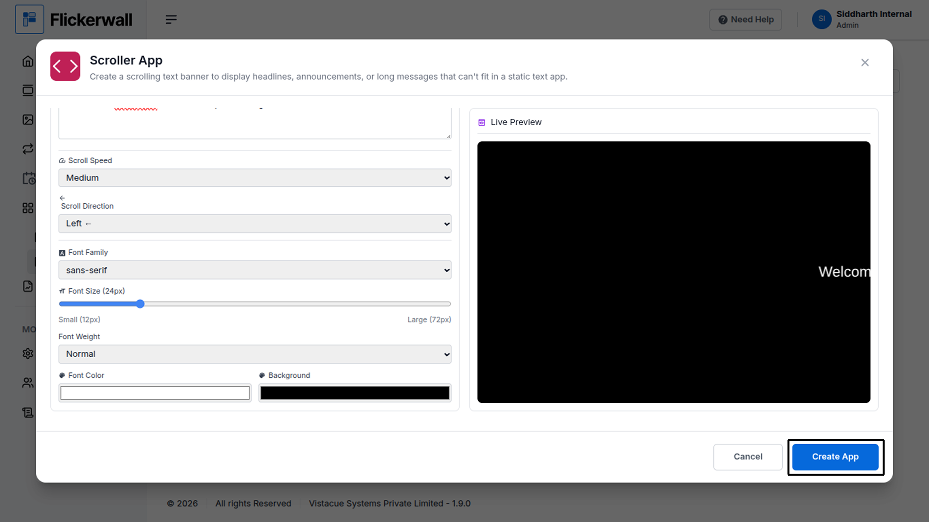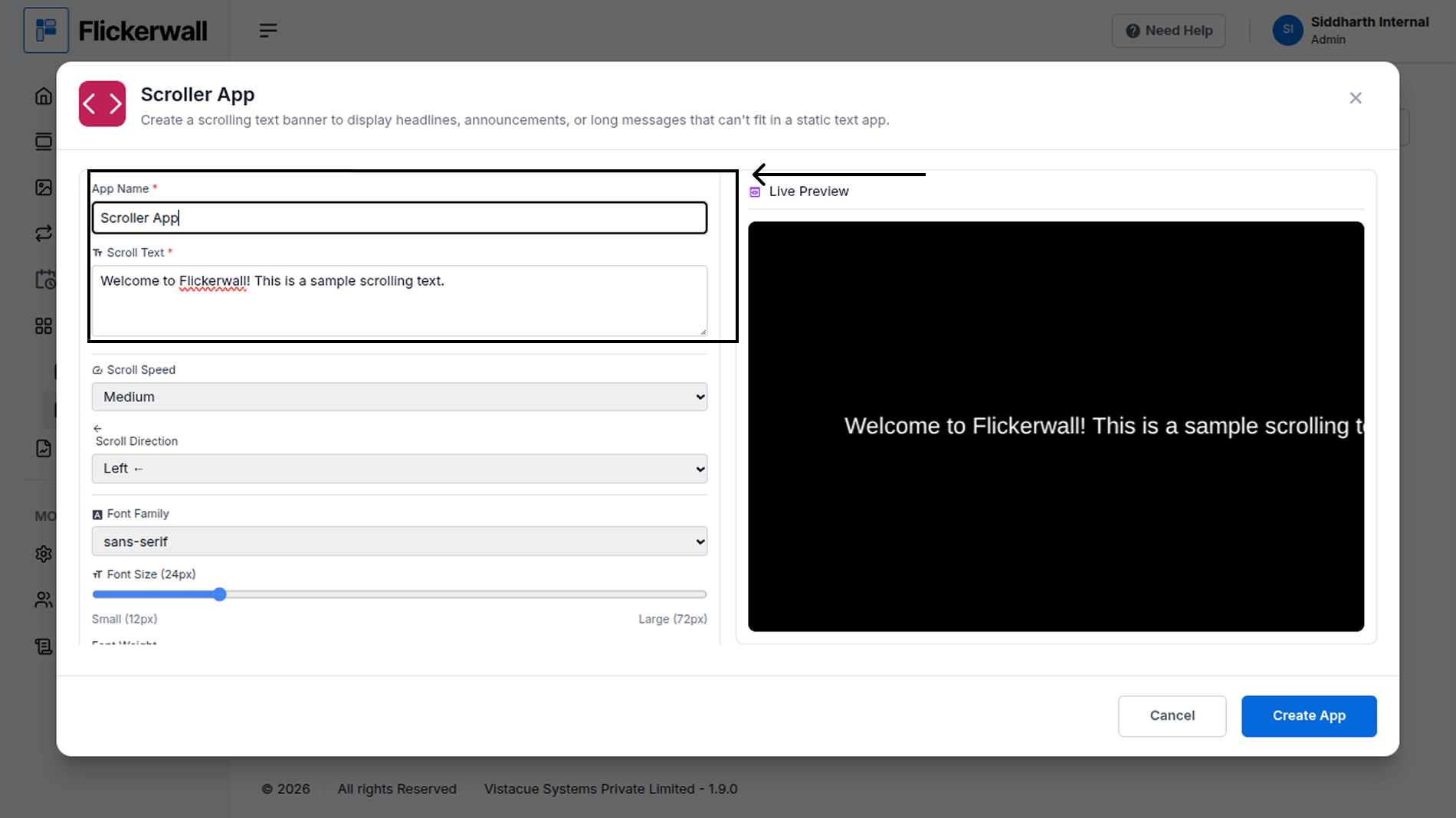 Step by step guide to learn how to add the Scroller app from the Flickerwall store