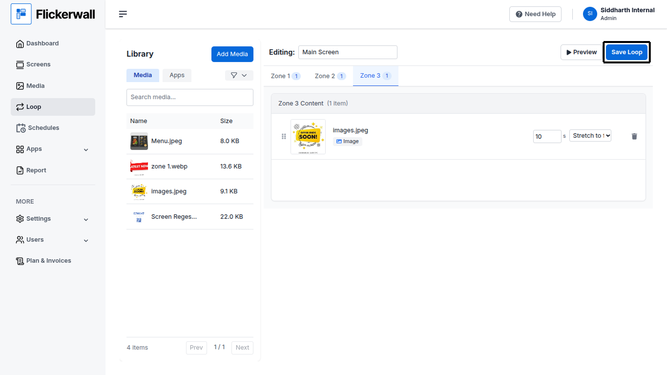 What Is a Loop? “Loop” is a way your desired content is displayed on your digital signage screens , It includes the Layout, Zones and Proportions of your content within the Screen