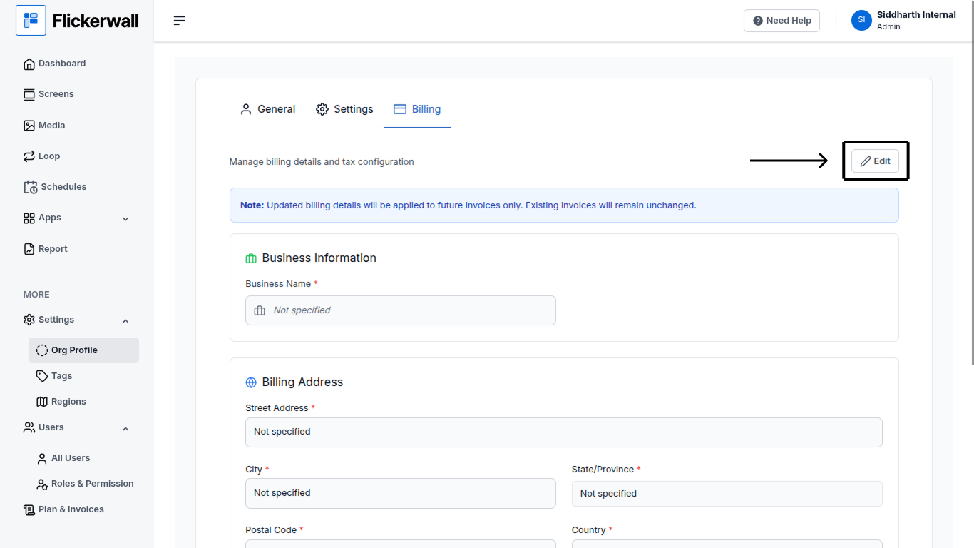 Learn how to Edit your Organization’s Billing details for better Management