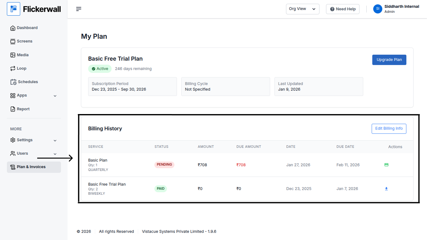 Billing History