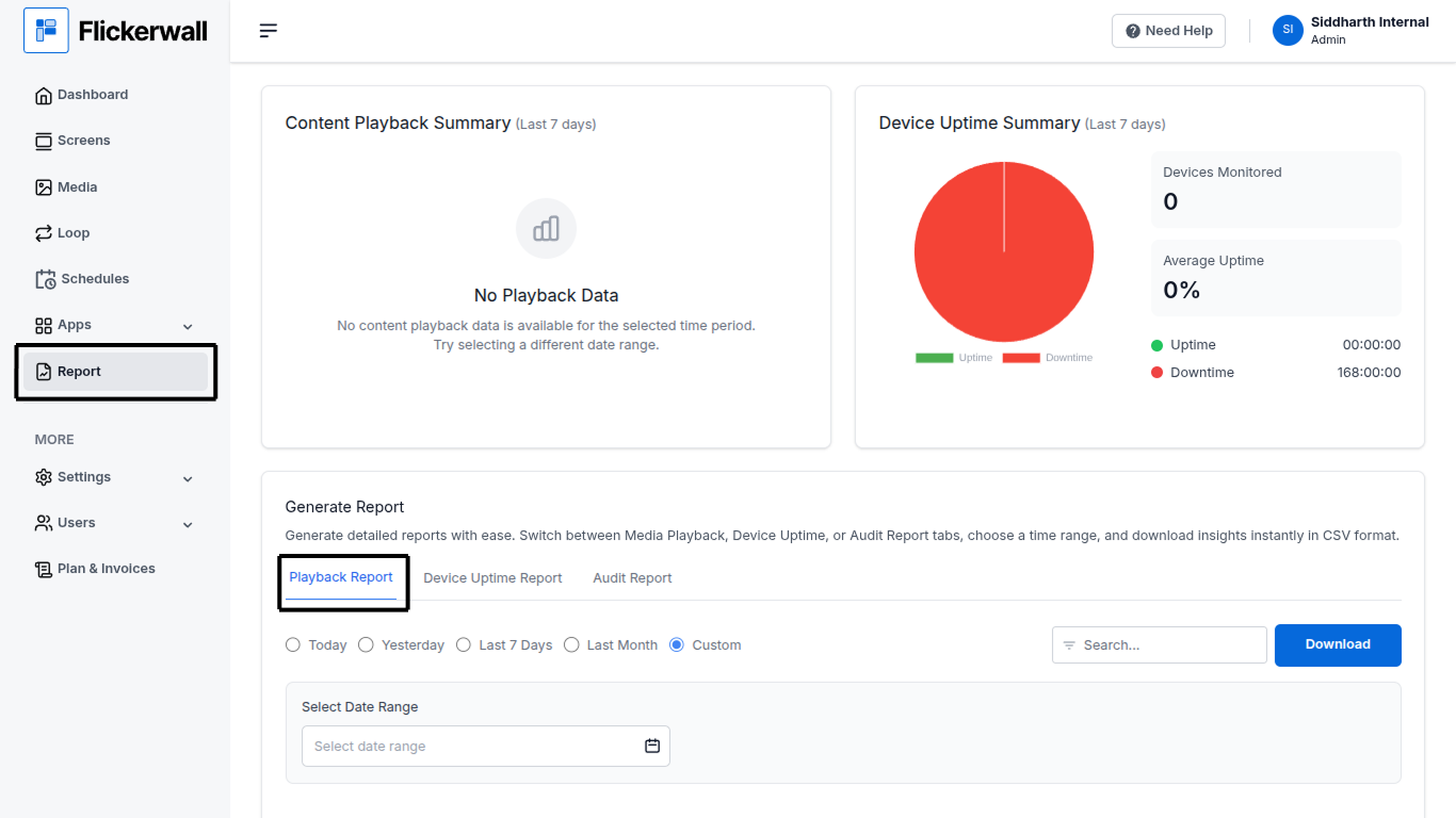 How to Download Device Uptime Report from Flickerwall Dashboard?
