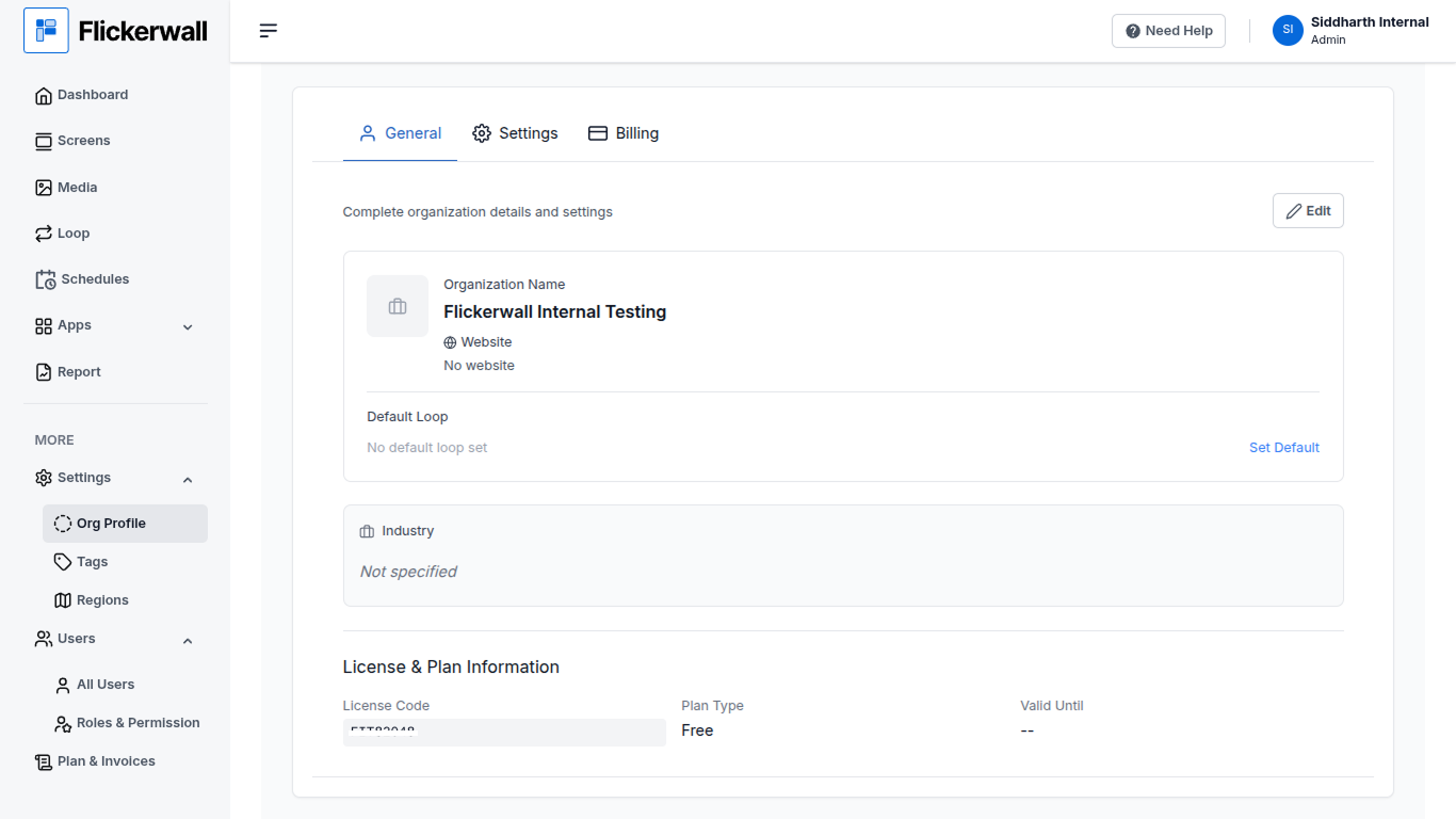 In the General Org Profile you can Add / Change the basic Yet very important and relevant information about your Organization.