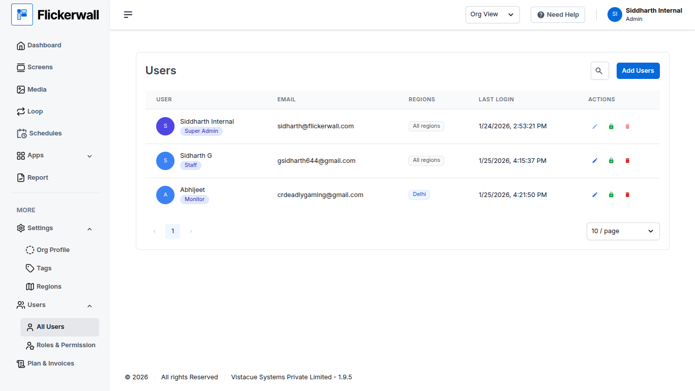 A user is a permission-bound member of an organization. Unlike a standalone guest. You can Add Users and assign them Screen Management Region wise or Add Users to Monitor the work Totally depending on how and what is efficient for you and your Business Usage